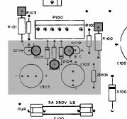 Prepare the holes in the deflection board by removing the solder from the Q100 emitter, Q101 emitter, lower ZD101, top R100, and top R101 holes. This is where some solder wick comes in handy! Insert the LV2000 into the deflection board. The 3 standoffs that were installed on the LV2000 go into the Q100 emitter, Q101 emitter and the lower ZD101 holes (the holes marked with a circle in the deflection board drawing below). note: on the first generation of deflection boards (as well as in the monitor manual), ZD101 was mislabeled as R105