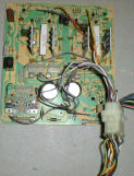 Plug your deflection board into the monitor harness. This can be done without installing the deflection board in the monitor, which makes testing easier. Lay the deflection board on something that does not conduct electricity, like a piece of wood or plastic cutting board. Do not plug any of the power transistors, or coil, etc. into the deflection board, since we are now going to test that the LV2000 alone is functioning. With only the harness plugged in, the monitor will not be generating high voltage. Note: The resistor in the degaussing circuit may smoke for a second. This will not cause any harm to the degaussing circuit or other parts of the deflection board. If you become disturbed by the sight of a small puff of magic smoke, then you can plug the degaussing coil in at this time. This just makes it harder to get to test points at the LV2000, since the deflection board has to be in the monitor if the degaussing coil is plugged in.